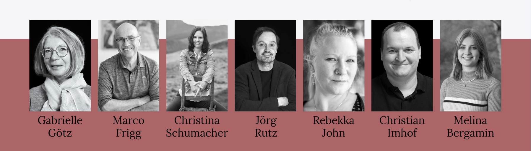 | Gabrielle Götz | Marco Frigg | Christina Schumacher | Jörg Rutz | Rebekka John | Christian Imhof | Melina Bergamin |