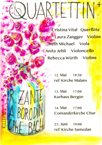 Das Ensemble Quartettin mit Cristina Vital (Querflöte), Laura Zangger (Violine), Ruth Michael (Viola) und Anita Jehli (Violoncello) fand sich 2020 zu einer Konzertreihe zusammen. Seit damals gehören die Auffahrtskonzerte mit jeweils 4 Auftritten in ganz Graubünden zum festen Bestandteil der Agenda der vier Musikerinnen.