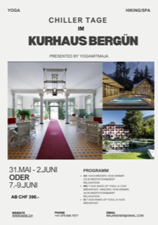 31MAI(MAI 31)14:0002JUN(JUN 2)11:00Chiller TageChiller Tage in Bergün bei Yogamitmaja